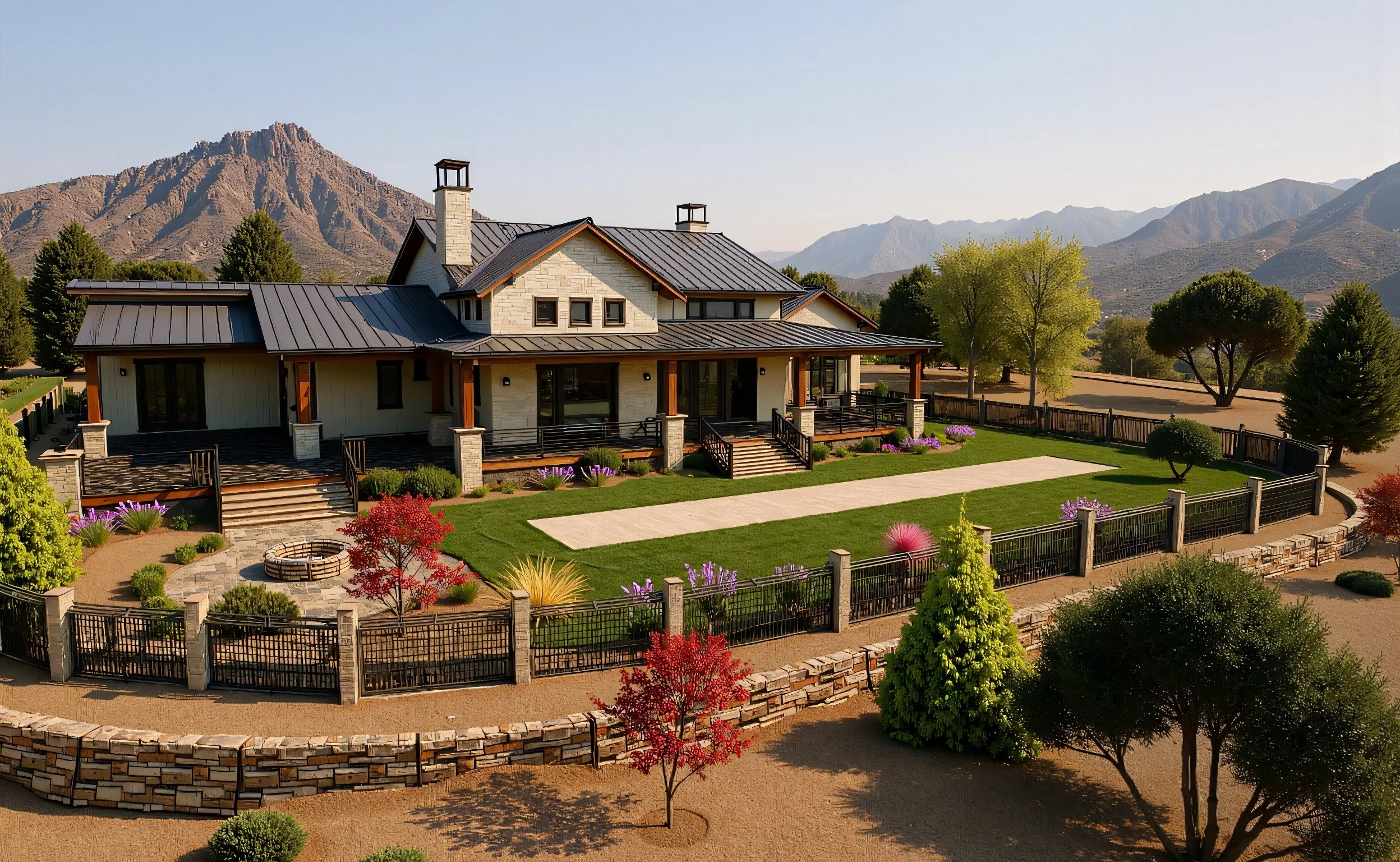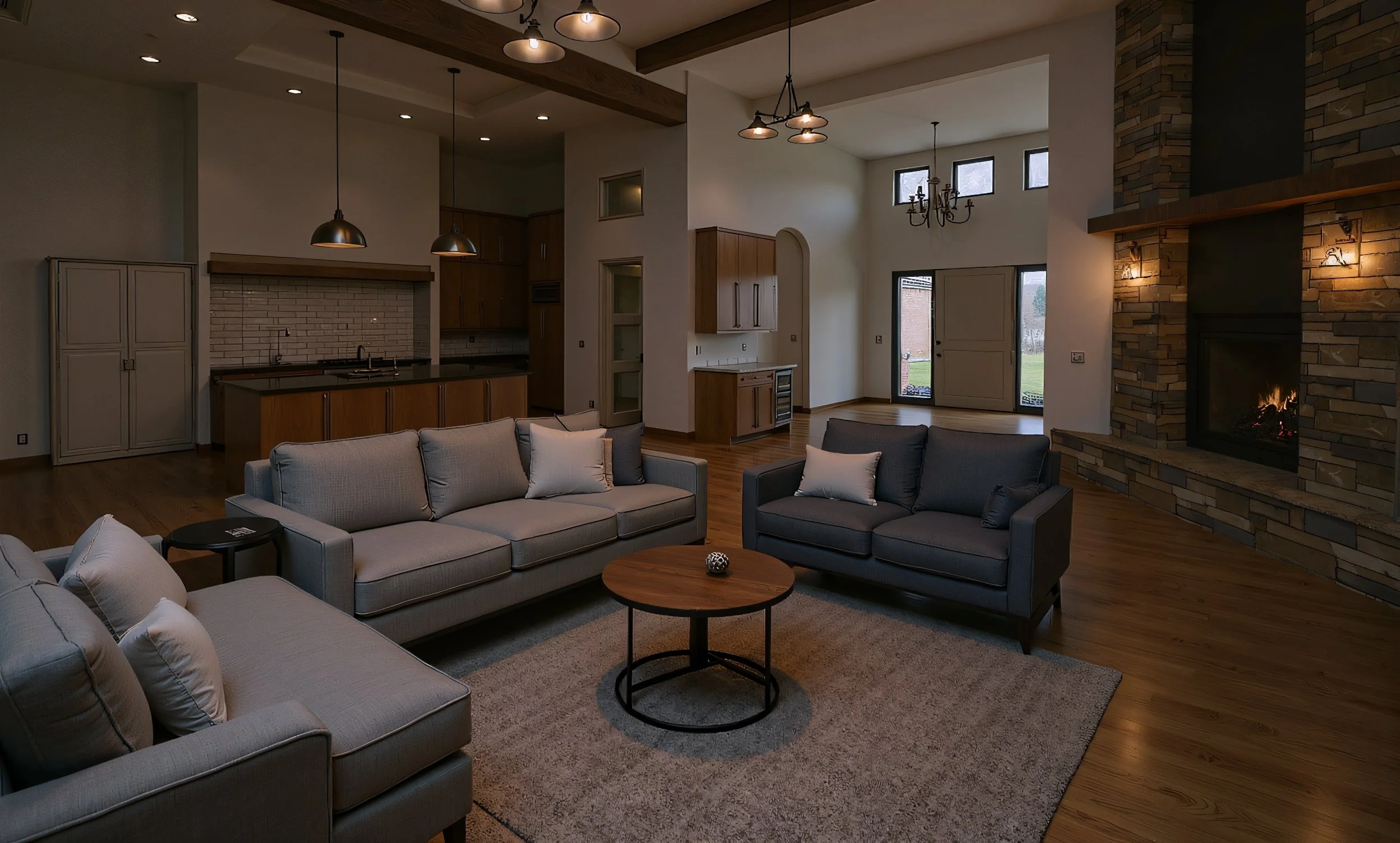 Country Manor draws inspiration from traditional estate homes while embracing modern design sensibilities. The exterior is defined by layered stonework, warm wood siding, and clean lines, creating a timeless presence that feels rooted in the landscape.